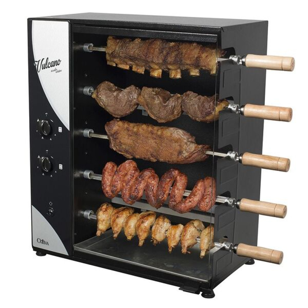 Assador Gás Glp Rotativo Arke Vulcano Cattiva 05 Espetos Bancada Bivolt 5175