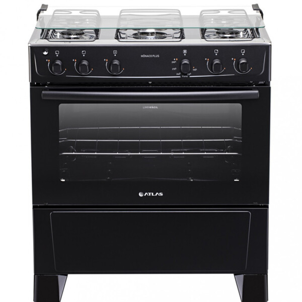 Fogão 5 Bocas Atlas Mônaco Plus Preto Com Mesa Inox Bivolt
