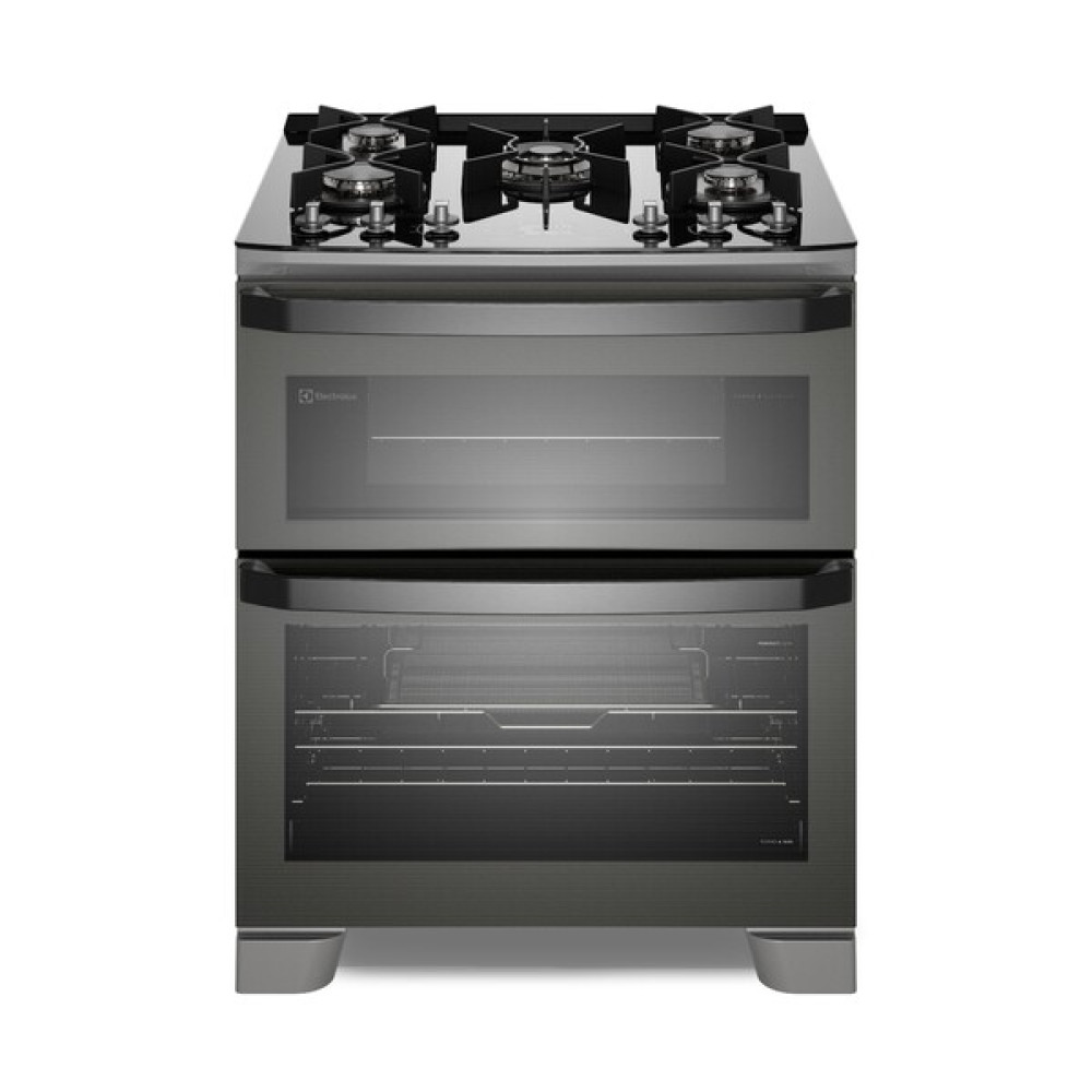 Fogão 5 Bocas Electrolux Cinza Expert Função Air Fryer 2 Fornos Grill E Timer (fe5ad) 220v